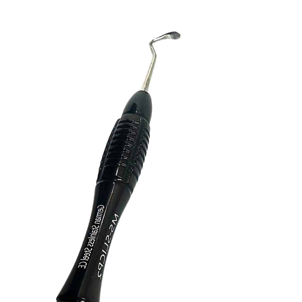 Dual-ended design: fine curved tip + paddle-type tip